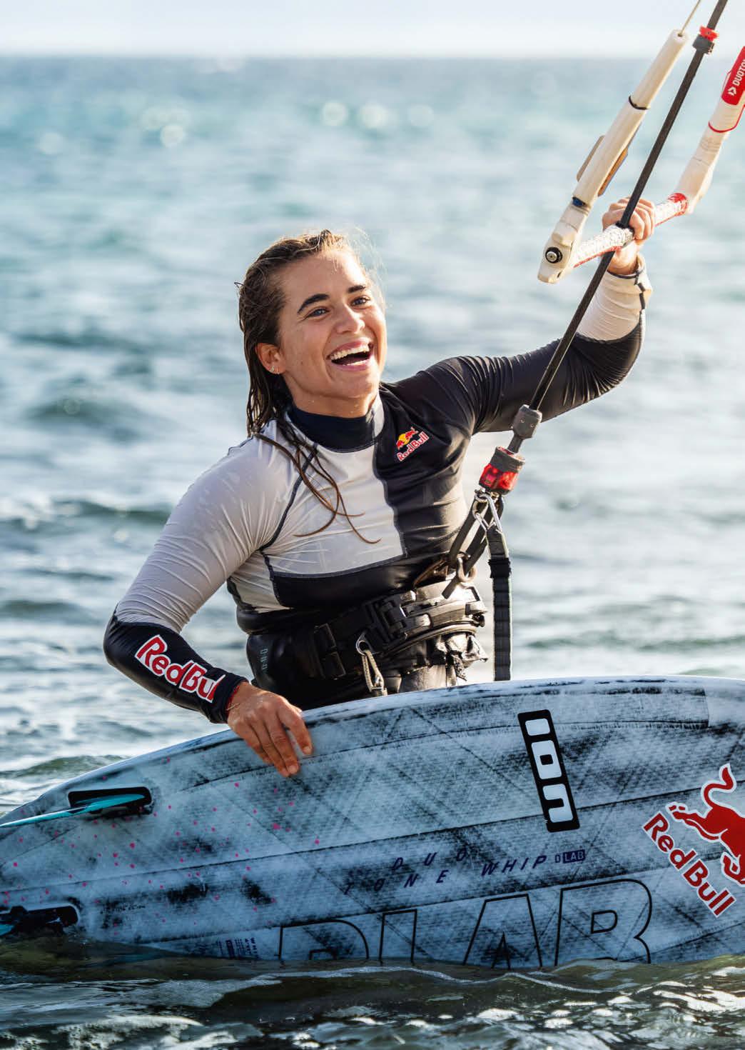 kommt aus Lausanne und trainiert in den Wellen vor Tarifa. Die Kitesurferin und Big-Air-Weltmeisterin beherrscht die Kunst von Flow und Timing – und schaffte so eine Pionierleistung.