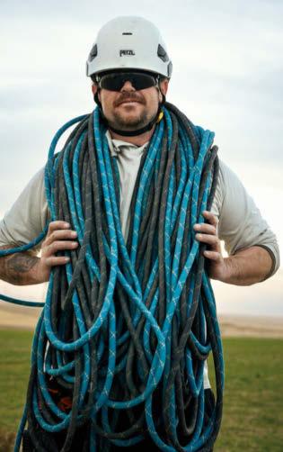 The Ojai, California–based photographer is a solid choice for sketchy assignments. He’s swum off the coast of Alaska capturing the training of the Coast Guard’s elite rescue unit and spent time with eagle masters in Mongolia during the dead of winter. For this issue, Bastien (shown on the right next to writer Mark Jenkins) leveraged his advanced climbing skills to photograph wind turbine technicians working hundreds of feet off the ground in central Idaho. He has worked for clients such as Patagonia, National Geographic, Outside, Apple and the Wall Street Journal. Page 114