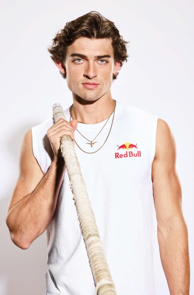 The young man with the tousled hair and the piercing blue eyes and the chiseled torso and the easy smile seems to have it all. He’s got world-class potential that he’s pouring into two track-andfield disciplines—the high jump and the pole vault—that basically nobody attempts to double up at the highest level. He’s a legitimate brand, with millions of followers on social media and corporate partners at his doorstep. He’s smart and modest and curiously thoughtful.