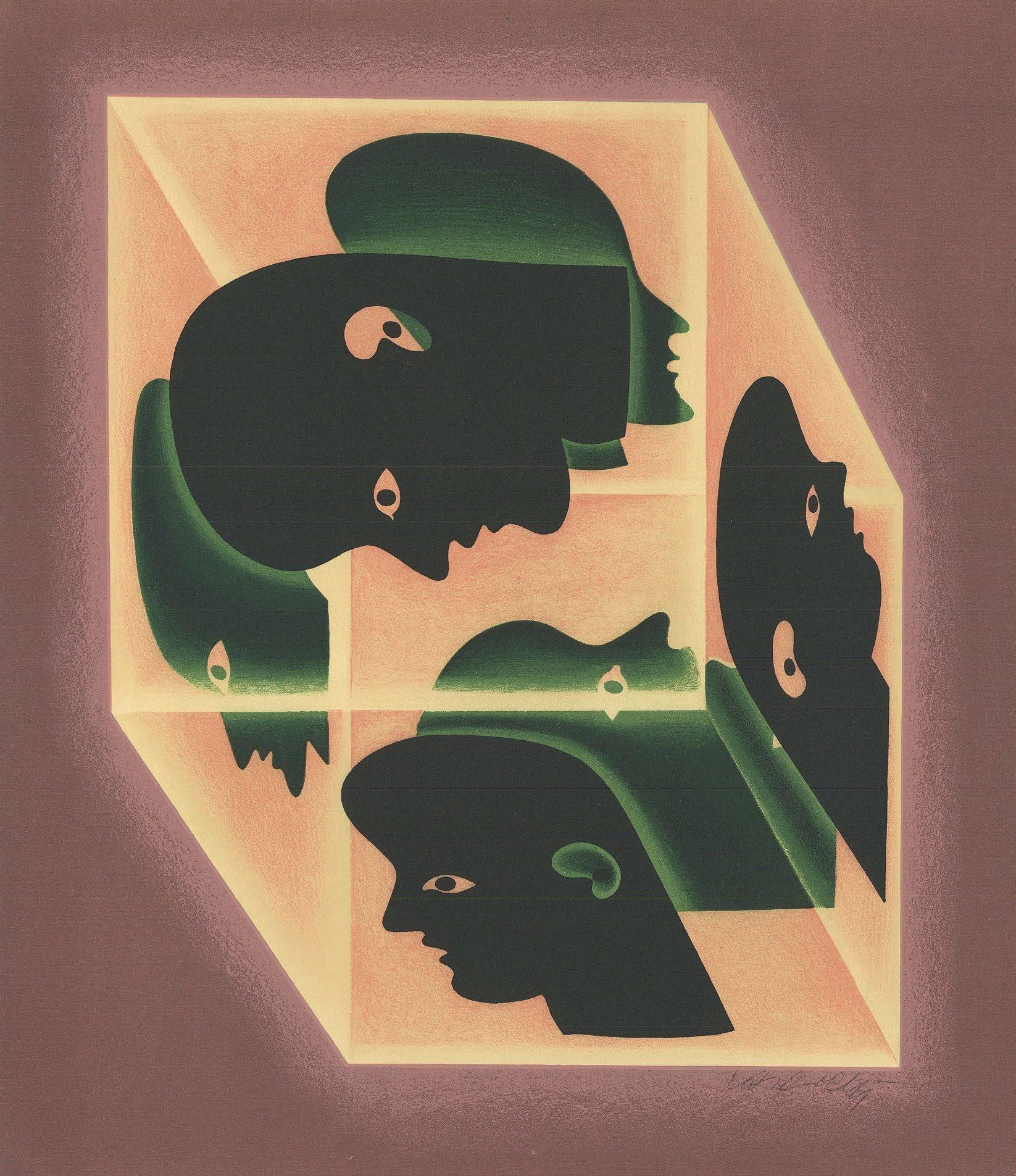 the gallery in the 1960s and continue to be represented by the Redfern. Carter soon built a reputation for his wall reliefs, shallow abstract forms that toggle between painting and sculpture. After Procktor’s third solo show in 1967, David Hockney presented him with a box of watercolours, and he declared that he would be remembered as the greatest watercolourist of his generation. On display in the centenary exhibition is Carter’s Parallelogram with bar (1972), a zingy mixed-media work with a typically physical presence, and Procktor’s Ego (1969), a dreamily washy, pastel-hued portrait of Eric Emerson, Gervase Griffiths and Ossie Clark lounging on an apple-green sofa in New York beside a vase of floppy tulips.