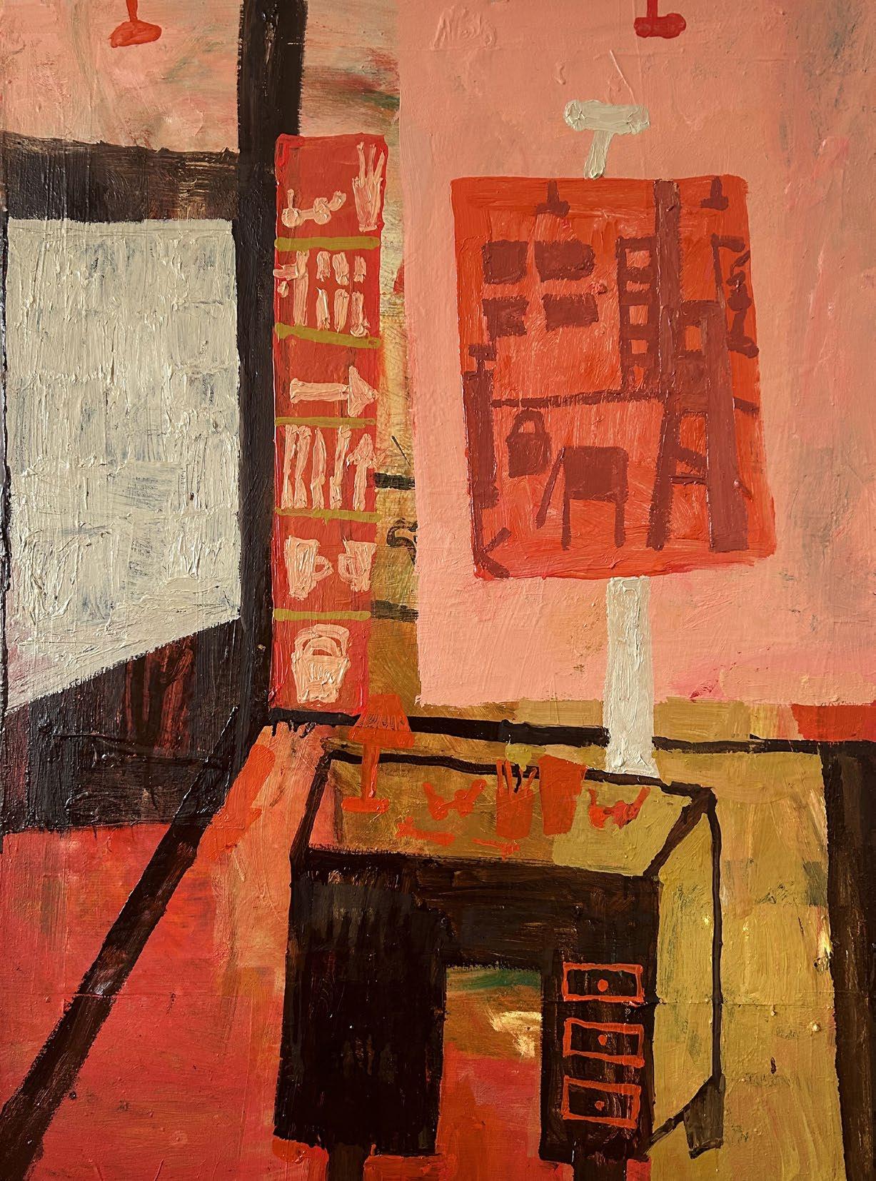 It has been a privilege to have exhibited my paintings at The Redfern Gallery over the years, especially when I think of all the amazing work that has shared these walls. I know Matisse’s The Red Studio well from seeing it in New York; an incredible painting. Flat yet full of light, space, and mystery. My painting here is not a direct response to The Red Studio, rather it is my own version of a red room. I hope there is some connection however in the pleasures of colour and engagement with the intimate everyday objects and places that surround us all.