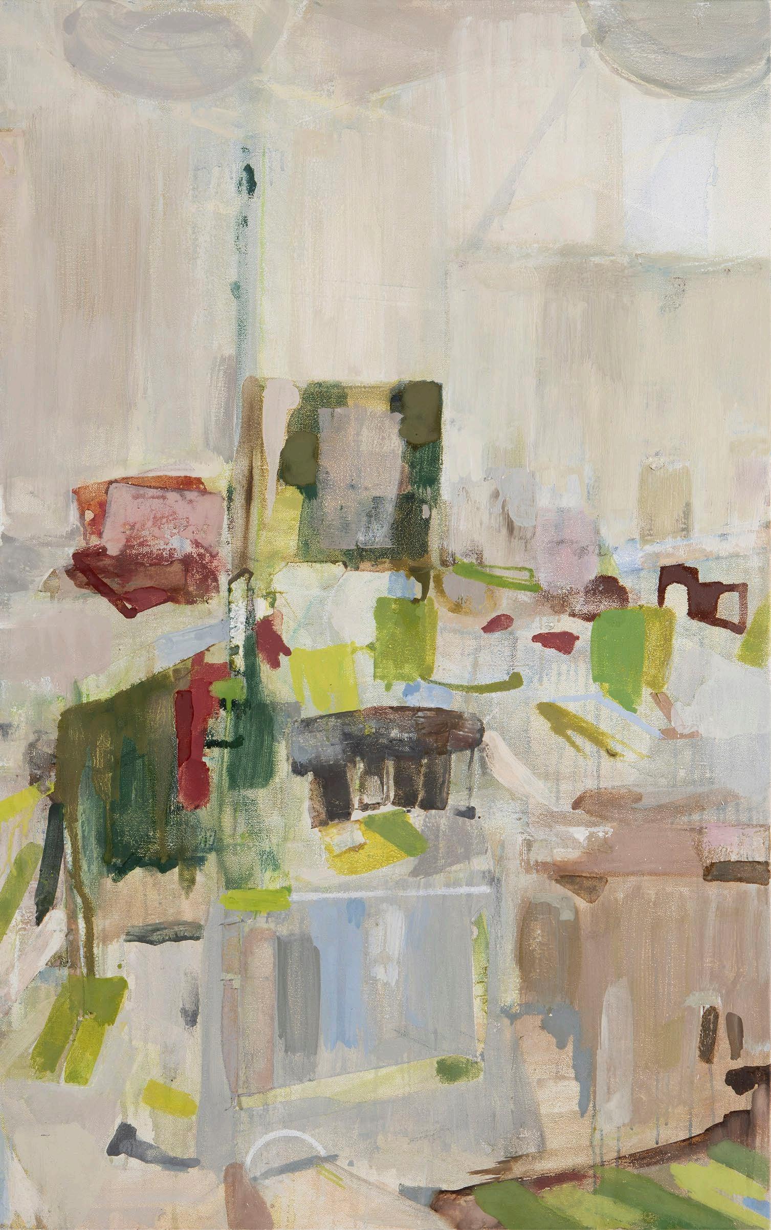 Sarah Armstrong-Jones offers a very intriguing take on The Red Studio , which leads us back to where the red in Matisse’s painting originally came from. Was it indeed produced by the optical effect of looking at bright green (the garden in sunlight) and then the brilliant ambiance of his white studio turning the after-image red? Armstrong-Jones recounts the genesis of her group of works: ‘I started by drawing my own studio, very simply, linear, roughly from a position that reflected Matisse’s view of his room, with paintings, objects, furniture and trying to imagine the room in shades of green and red; the colours representing my paintings and drawings propped up in my own studio.’ Her cooler palette leans more to green and blue and offers a series of clues to the red/green polarity which is key to this interpretation.