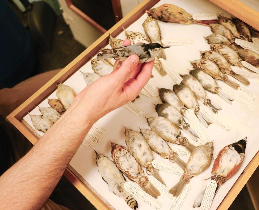 batting and use pins and string to ensure that it dries in the form it had in life. The preserved bird then rests in a drawer of the expansive storage unit, waiting to be removed for future research.