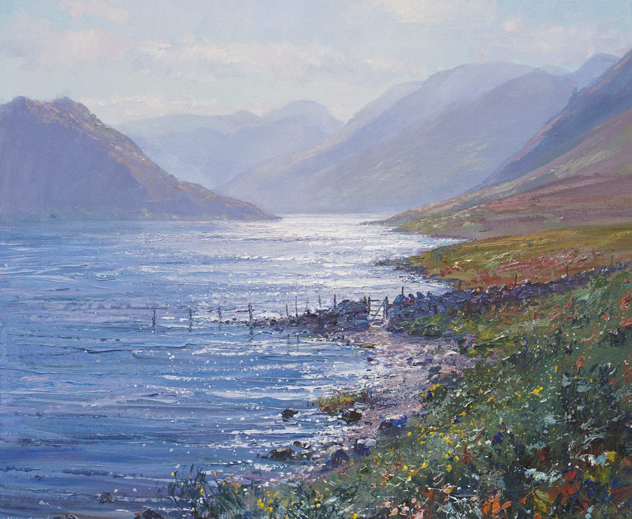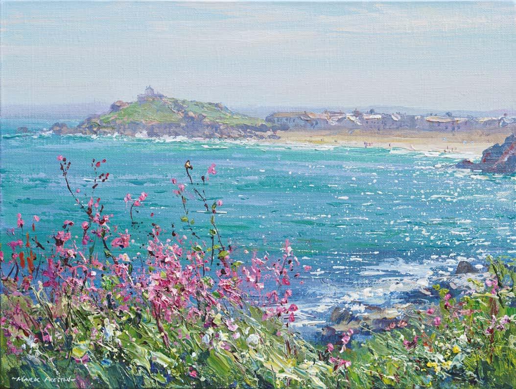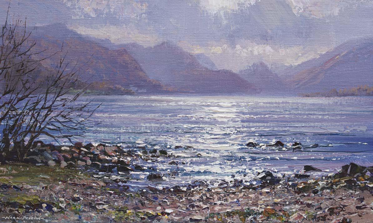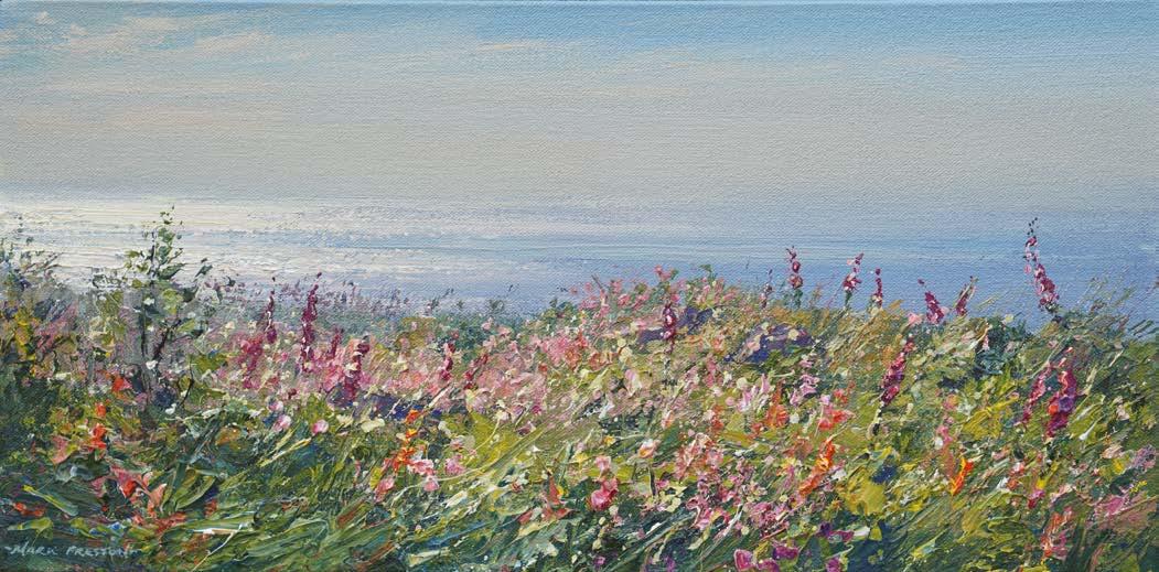 We are pleased to welcome Mark Preston back for his 6th solo exhibition at Red Rag Gallery. His latest collection of 40 new works painted in Derbyshire, Cornwall, the Lake District and Wales convey perfectly Mark’s fascination with the effects of changing weather and seasons on the landscape. His paintings capture these places in all their glory; sun, rain, snow, spring flowers, dramatic mountains and sunlit seas.