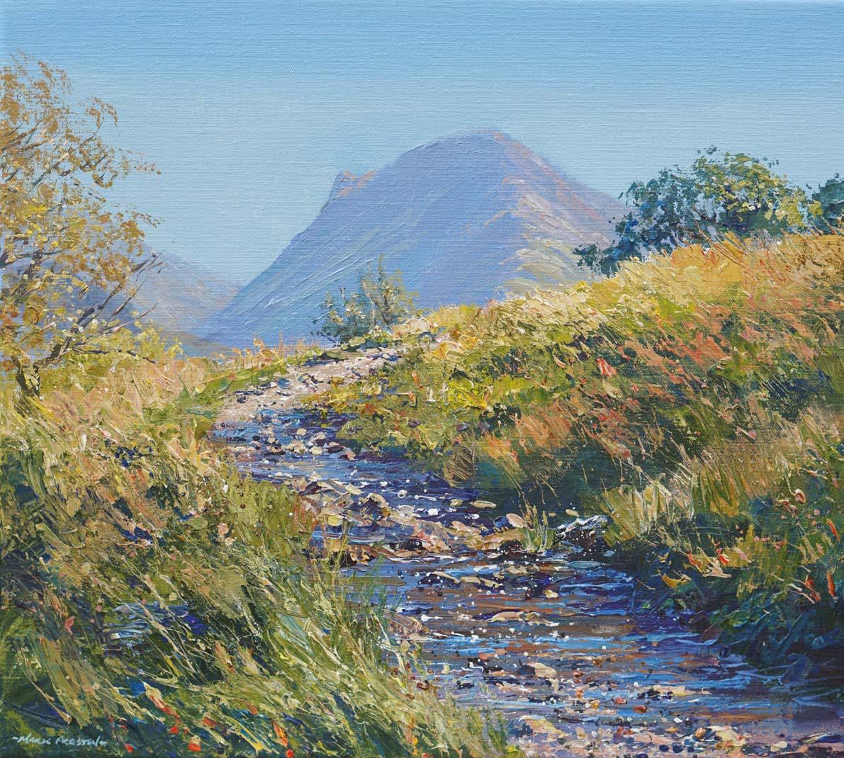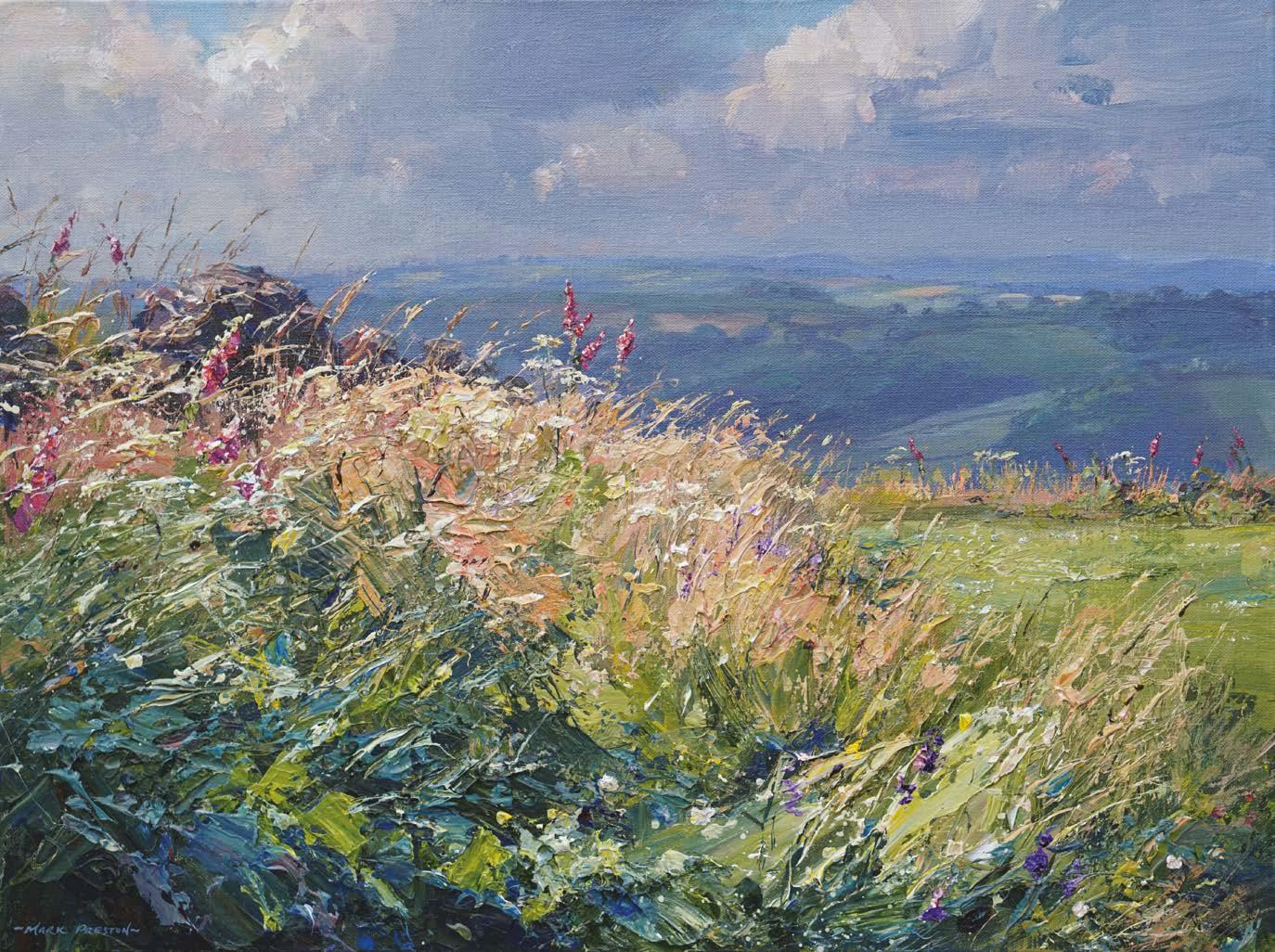 Mark develops a close connection with the places he paints, finding the more he gets to know an area the more he can see in it, the more able he is to capture the effects of weather and the seasons, ‘ it starts with a process and an endlessly fascinating struggle towards finding a painterly equivalent for what I see, feel and experience in the landscape. When I feel I’ve achieved this, or get a positive reaction from people, it gives me a sense of satisfaction that the hard work has paid off. ’