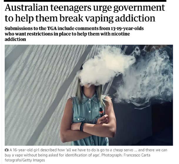 “All we have to do is go to a cheap servo … and there we can buy a vape without being asked for identification of age….” – 16-year-old girl