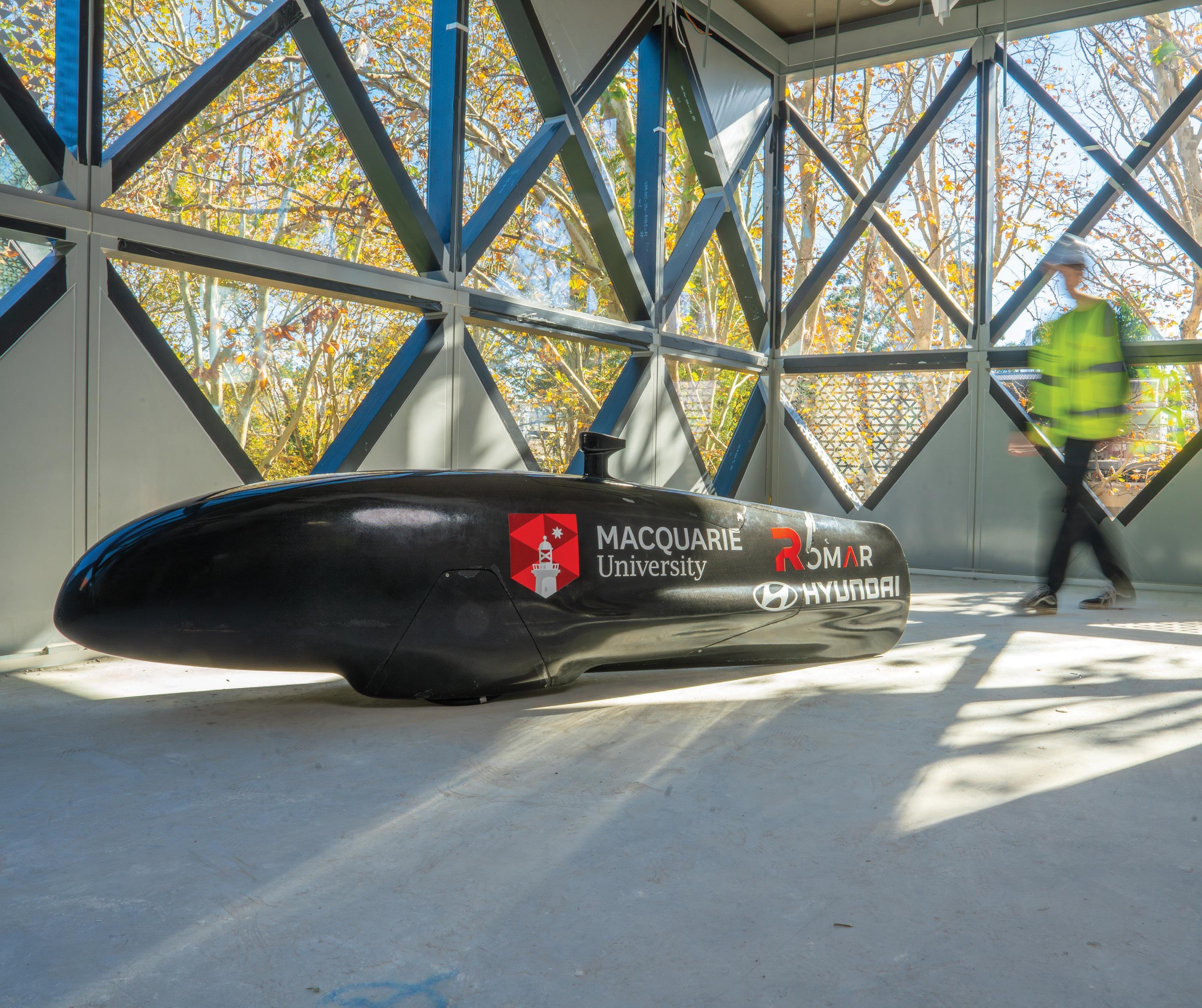 Specialist spaces within the new building include a drone lab; civil engineering labs, with spaces for concrete testing, geotechnical labs and fluid labs; a renewable energy and smart grid lab; a wifi/future communications lab; rapid prototyping facilities; dedicated virtual reality spaces; spaces for FIRST robotics, MQ Speed (see left) and the MQ Orbital satellite building team; student presentation zones and a fully equipped mechanical engineering workshop.
