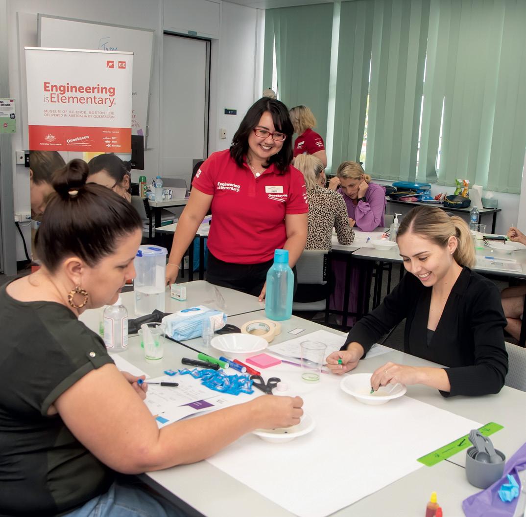 The Engineering is Elementary program uses hands-on activities to build primary school teachers’ skills and knowledge to bring their STEM teaching to life. These free workshops are delivered by Questacon, The National Science and Technology Centre, and supported by Defence until 2027. Through these workshops, educators are empowered to enable their students to learn engineering through fun activities, such as learning chemical engineering by playing with playdough or sustainable engineering by building a solar oven.