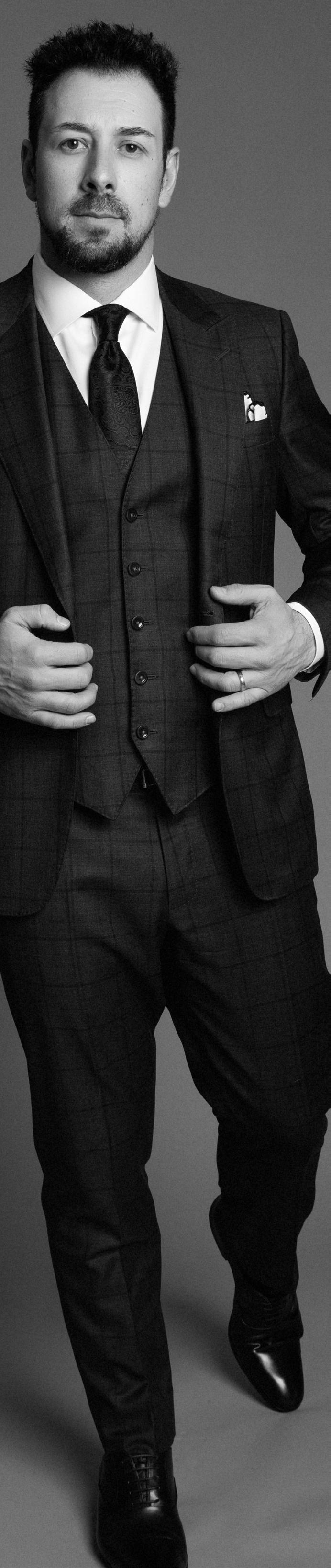 Whether it’s dressy or casual, I always like to feel put together. I appreciate small details - the shoes, the belt, the tie… For a formal look, I love the feel of a three-piece suit with peak lapels - nothing beats that for a dressy occasion. On a casual day, I’ll pair a comfortable cotton tee with a pair of Paige jeans and Magnani sneakers.