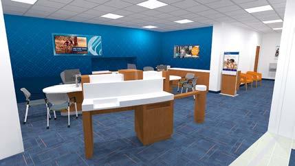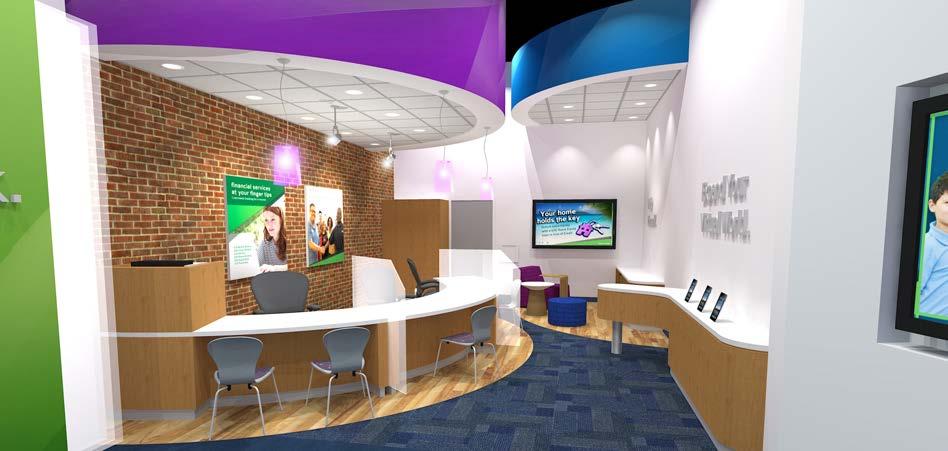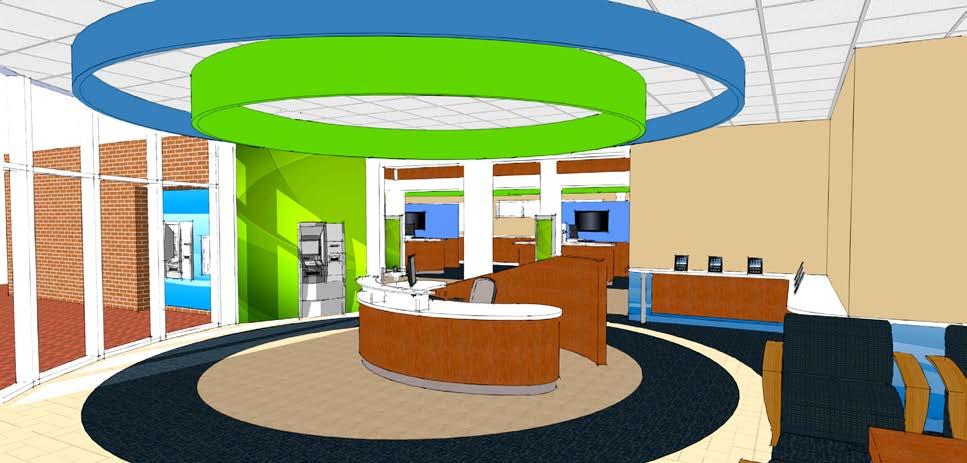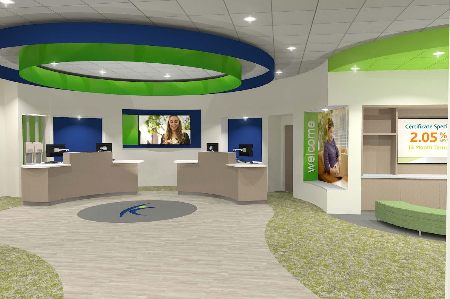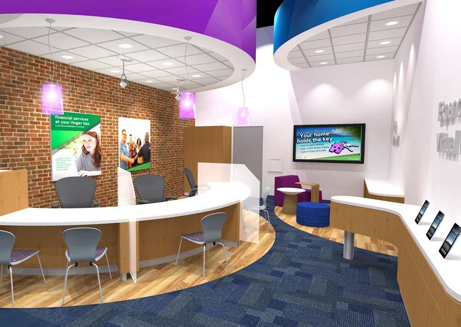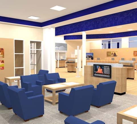 The goal was to take the original prototype design and create a “revisoned branch” that would allow for more branding opportunities, product and service displays, and a great member experience all inside a new building that would provide for outward projection of the environment to potential members