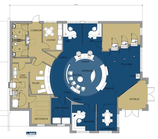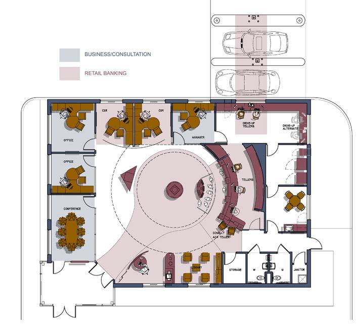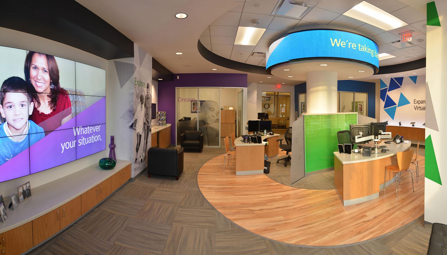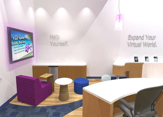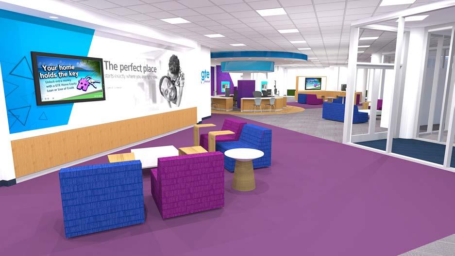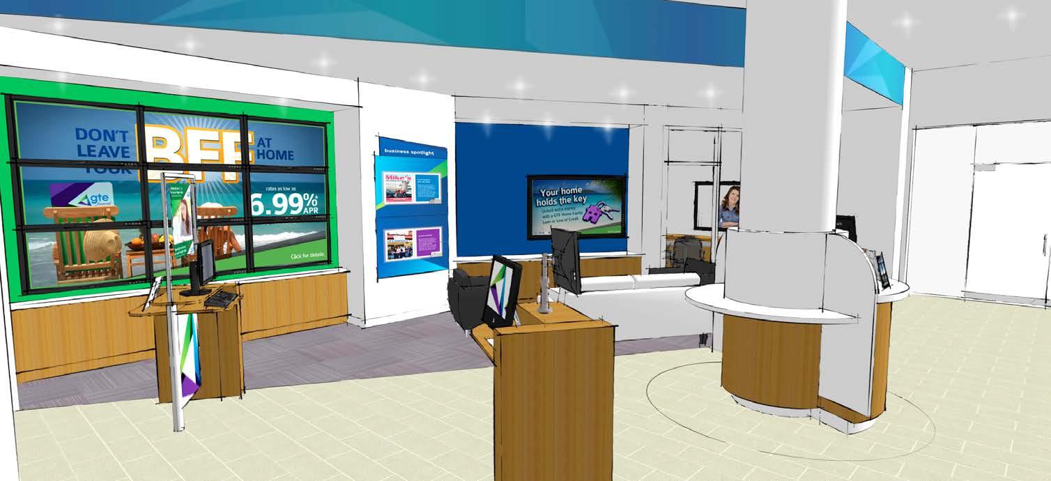 The goal was to take the original prototype design and create a “revisoned branch” that would allow for more branding opportunities, product and service displays, and a great member experience all inside a new building that would provide for outward projection of the environment to potential members