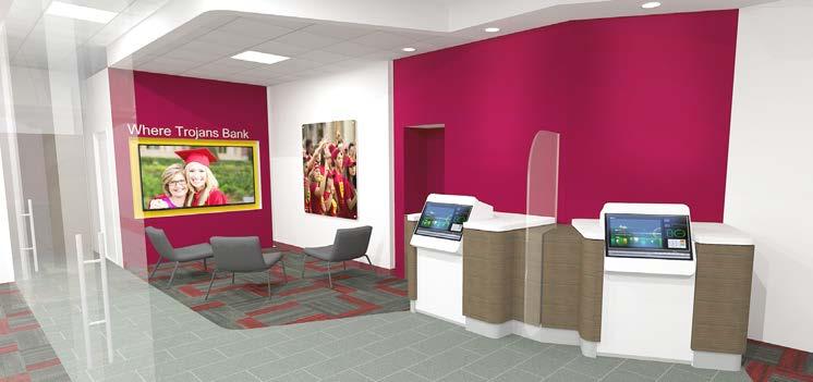 Ron Reilly was the designer for the newest branch for the University of Kentucky FCU. The goal was to create a branch that had a dynamic interior as well as an exterior that met all the strict design guidelines of the development where the branch was to be built