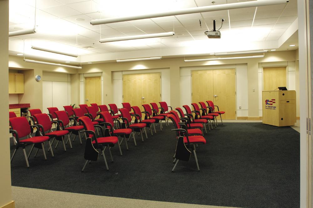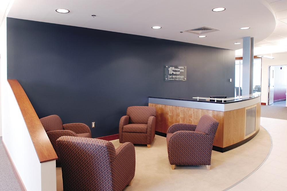 Ron Reilly was the lead designer during the re-design and implementation of the interiors of the new headquarters for 1st Advantage Federal Credit Union. The design utilized the same palette and signature elements used throughout their entire footprint.