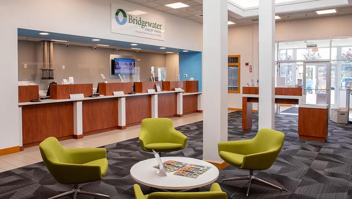 The design for Bridgewater CU is part of Merrimack Valley Credit Union. The goal was to refresh a tired older bank branch into a more inspired member experience in a retail location near where there are plans to build a new branch.