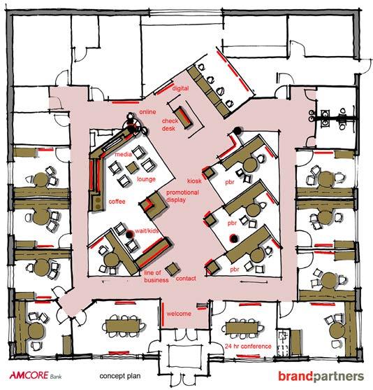 “branches should be a brand icon that respresents the personality of the institution and fit comfortably in its surroundings ”