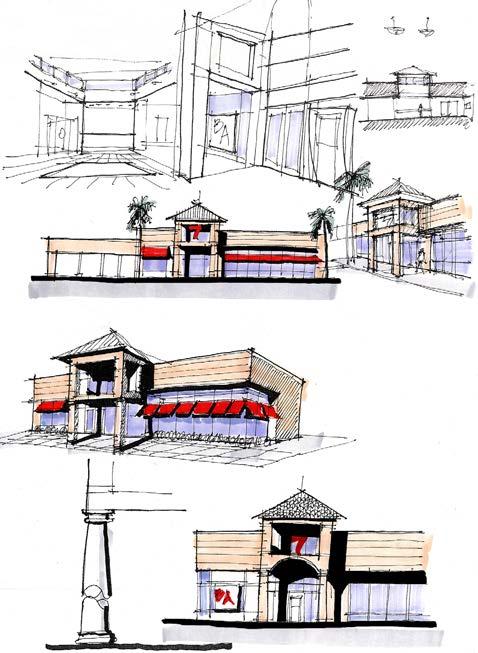 Reilly Design designed concepts for the repositioning of a suburban office building into a headquarters building for a regional credit union. The goal was to creat a more iconic architecture that would breath new life into a tired old building while giving the building a more current contemporary look