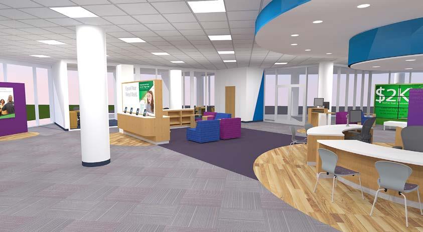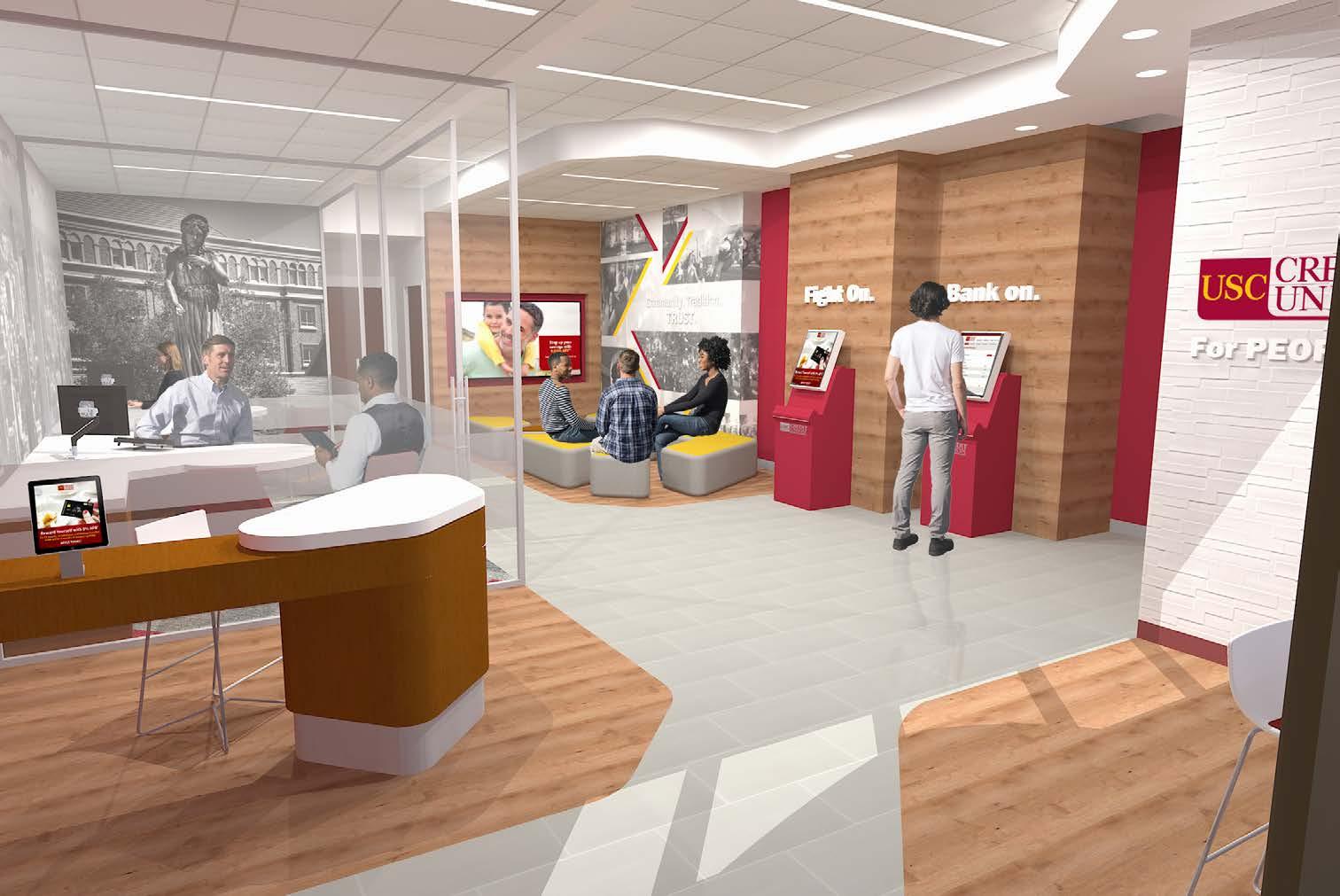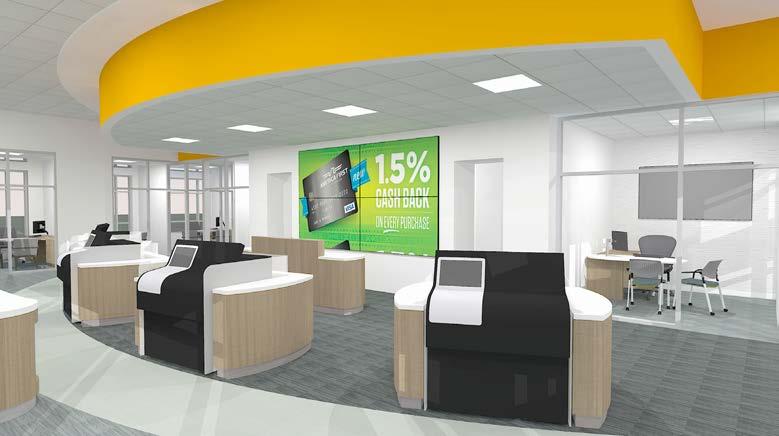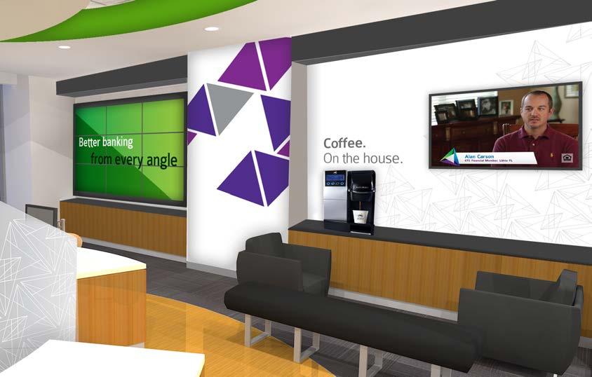 Reilly Design collaborated with Newground|Adrenaline on design concept to create a new refreshed branch for their current large South Tampa branch. The goal was to create a fresh new environment utilizing the new brand palette and signature elements to better reflect the new member experience.