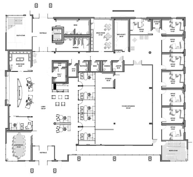 offices are large (oversized) smaller offices would create opportunities for more program. office walls could be constructed to allow for more transparency