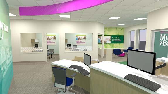 Reilly Design collaborated again with Adrenaline on design concepts for the enovation of the Mutual Bank Hanson branch. The first branch to leverage to the new universal banker model and new brand palette creates a new fresh customer experience.