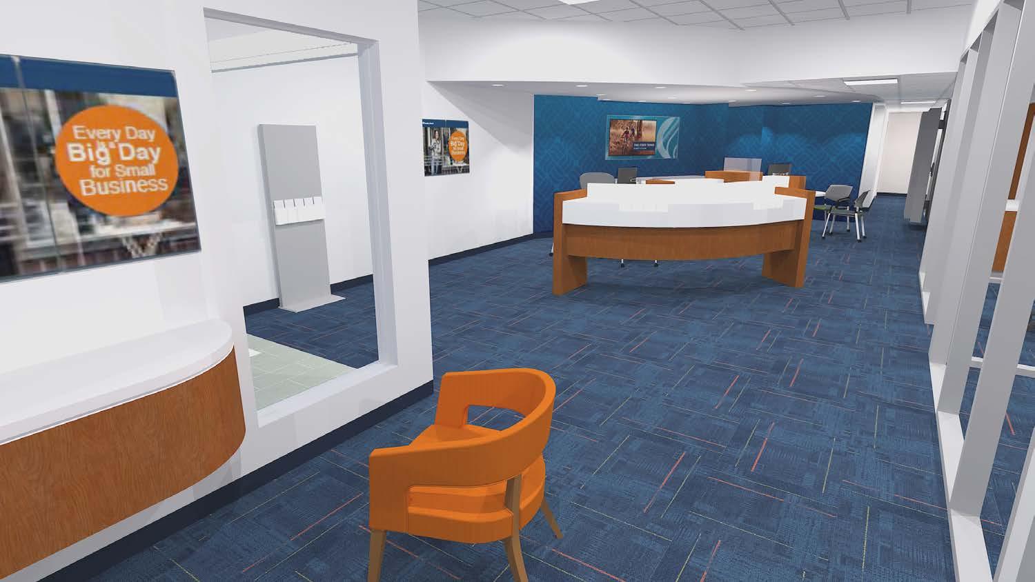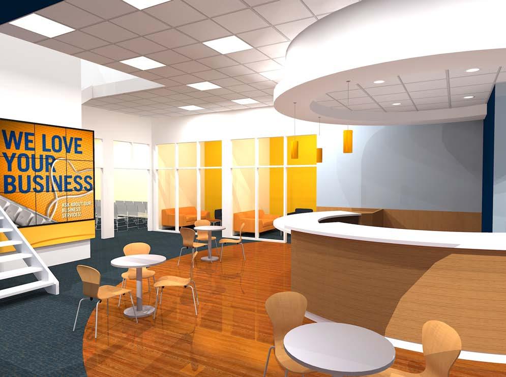 Reilly Design collaborated again with Adrenaline on design concepts to redesign an existing branch. Once again the goal was to re-work not only the floor plan, but to reimagine the entire customer experience. The goal was to create a new brand appropriate environment that was more efficient, leveraged technology, and created space for line-of-business awareness.