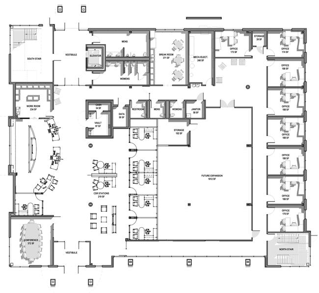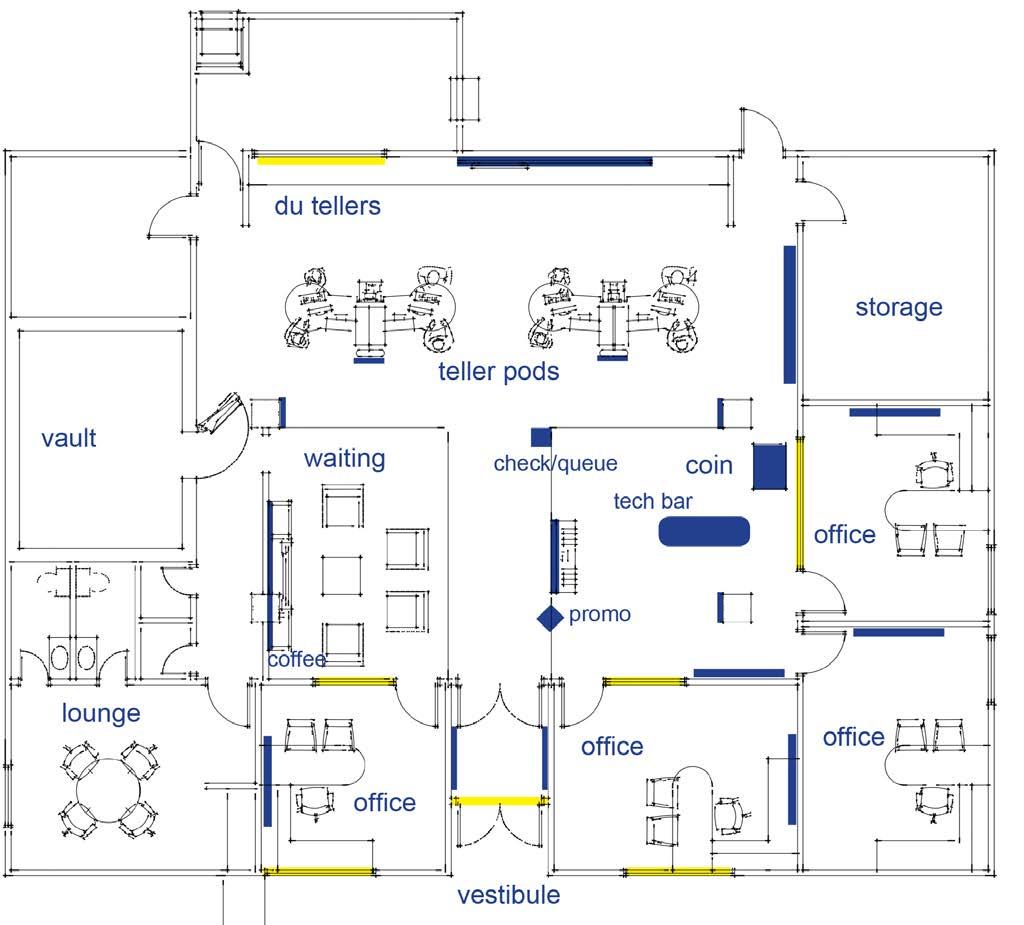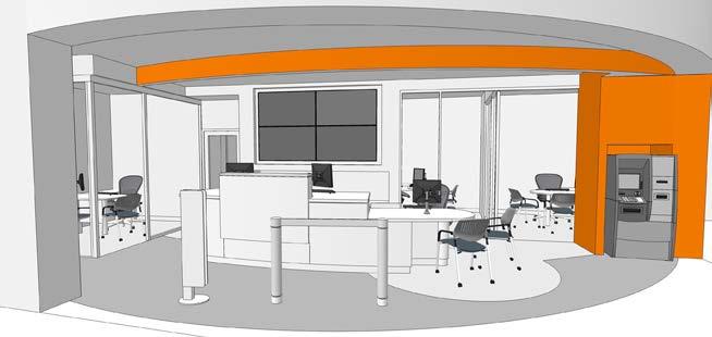 manager’s office seems large and inefficient with little visibility to the branch and platform area