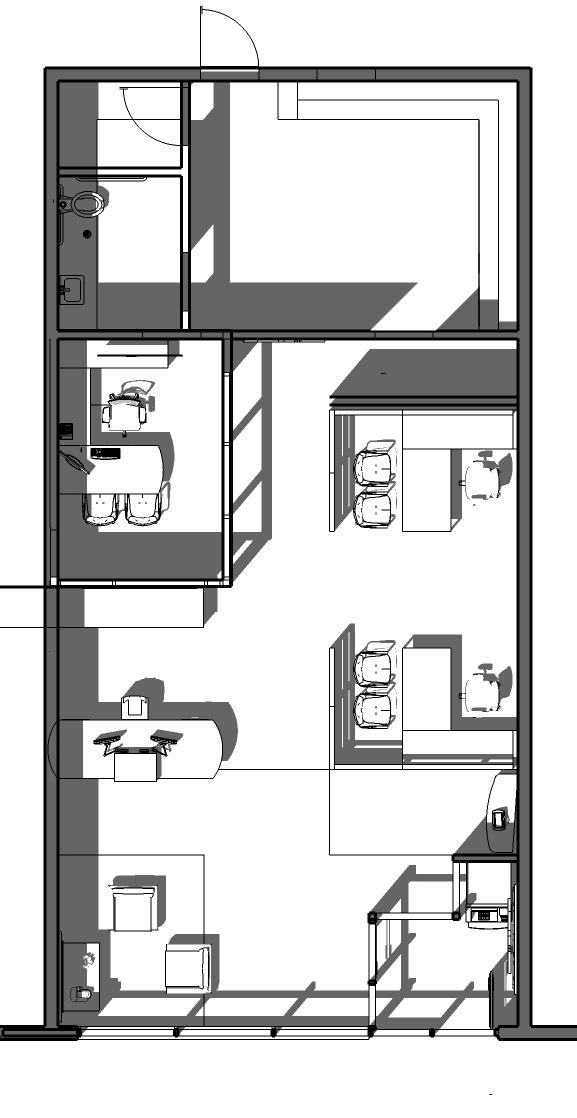 inefficent space that doesn’t present an ideal view for customer. no opportunity for merchandising of brand projection