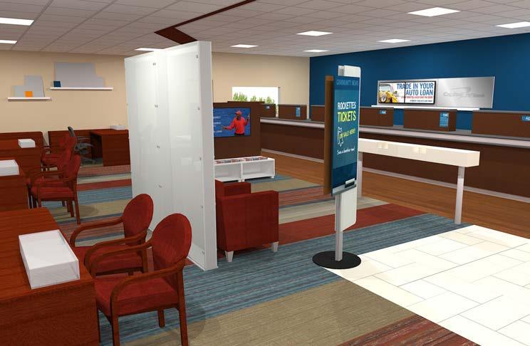 Reilly Design collaborated again with Adrenaline on design concepts for the new Monrone Bank & Trust branch. The first branch to leverage to the new universal banker model and new brand palette creates a new fresh customer experience. This particular branch will cater to customers utilizining MB&T’s lines of business realted to investment products and business banking.