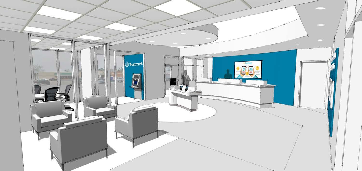 Reilly Design is currently working with Adrenaline on design concepts to renovate the Petal, MS branch for Trustmark. The goal is to convince the client to retain Adrenaline over their current firm Gilmore Group