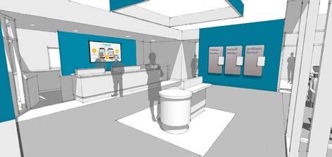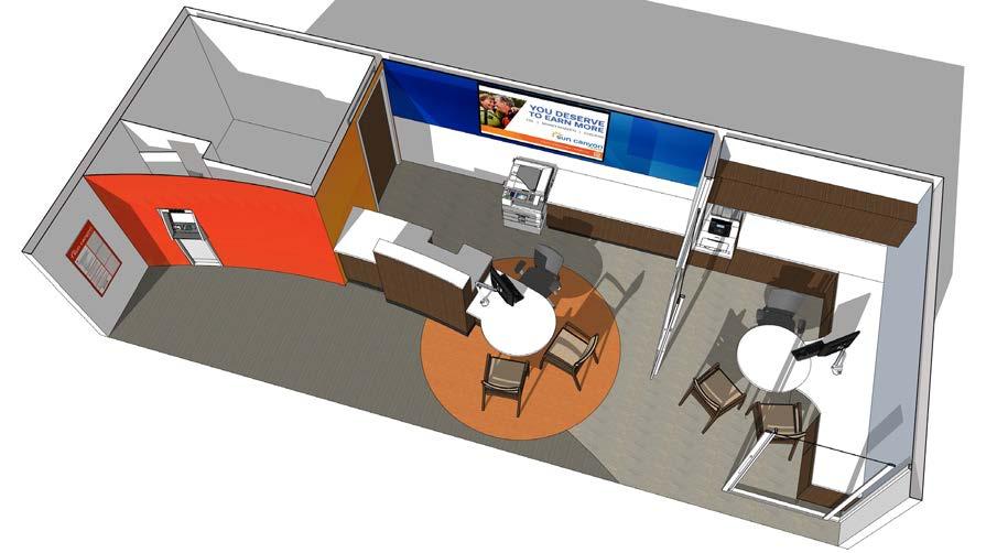 Reilly Design collaborated again with Adrenaline on design concepts for a new micro branch in a lease space in a downtown mixed use development. The goal is to create a vibrant brand space with a the ability to provide full services.