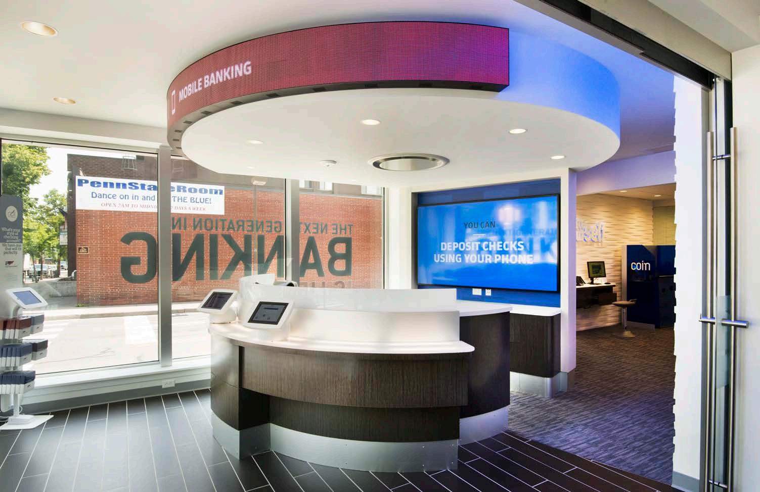 Reilly Design collaborated again with Adrenaline on design concepts for a new student focused branch to be built adjacent to the campus of Penn State University. The goal is to create a vibrant brand space with a special focus on the financial needs of the student demographic. The environment should also appeal to and be able to serve the local consumer and small business client as well.
