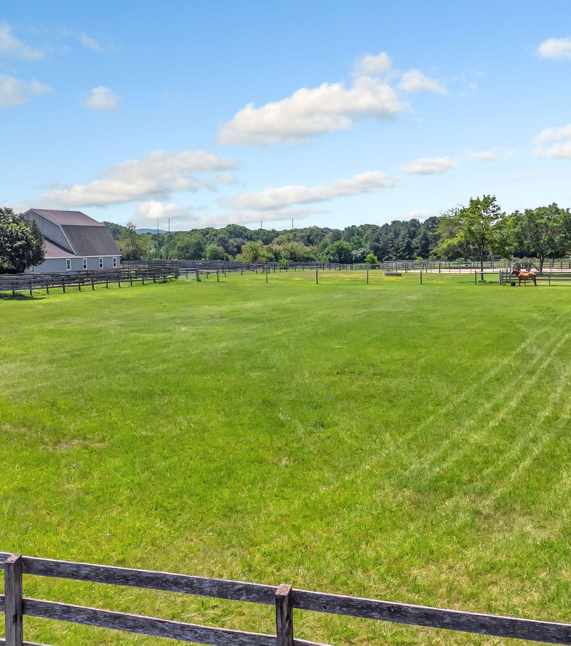 NORTH SALEM Beautiful, North Salem equestrian property features 25 stalls, heated 70-foot x 170-foot indoor riding arena, 130-foot x 220-foot outdoor riding arena with irrigation, 5 grass paddocks, 3 all-weather paddocks with run-in sheds and new fencing. Barn includes 2 grooming stalls, a wash stall, large tack room, powder room and office. Direct access to North Salem Bridle Trails. Turnkey, custom-built Colonial home with welcoming wraparound front porch. You'll love the open floor plan, oversized windows, beautiful 150-year-old oak floors throughout and original hand-hewn beams. Exquisite design is showcased throughout the living room, office, dining room, gourmet eat-in kitchen with butler's pantry and wet bar, family room with fireplace and mudroom. The second floor includes a luxurious, oversized primary bedroom and bathroom with radiant heat, walk-in closet, plus 2 bedrooms with shared bathroom. The lower level can be finished to suit. Huge attic offers storage galore. Two-car garage has radiant heat and unfinished studio space.