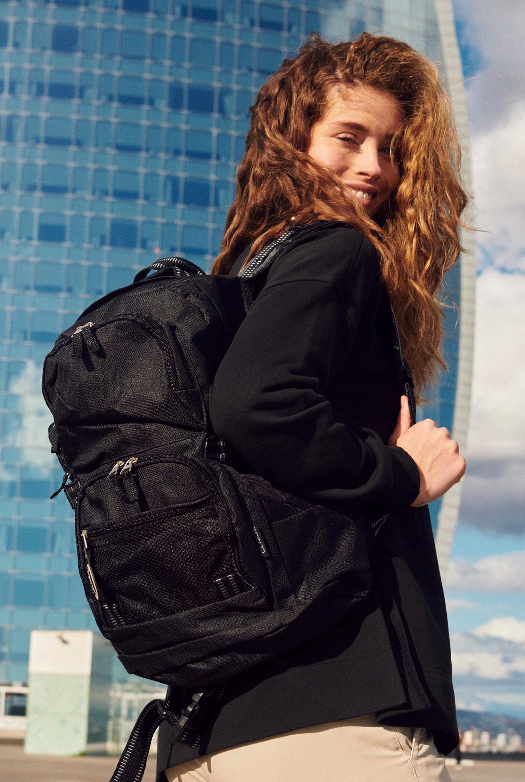 Funktionell ryggsäck i en välarbetad design - passar för de flesta tillfällen. Utrustad med två stora fack som är separerade av ett inre fodral för att hålla din bärbara dator skyddad. Det andra facket har en meshficka med olika fack samt en nyckelkrok. En övre ficka för enkel åtkomst och en dold ficka i ryggen håller dina värdesaker säkra. Ett rejält band baktill gör det möjligt att placera ryggsäcken på din trolley. Reflekterande detaljer gör dig synlig i mörker. Mått och volym:45x31x20 cm - 28 L.