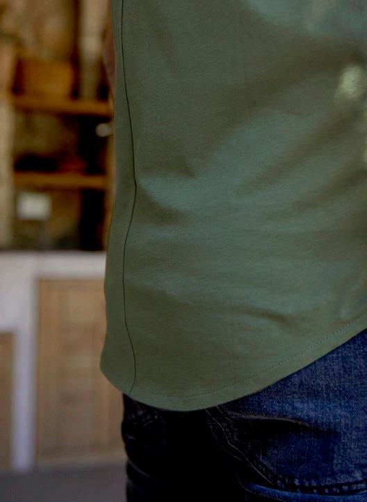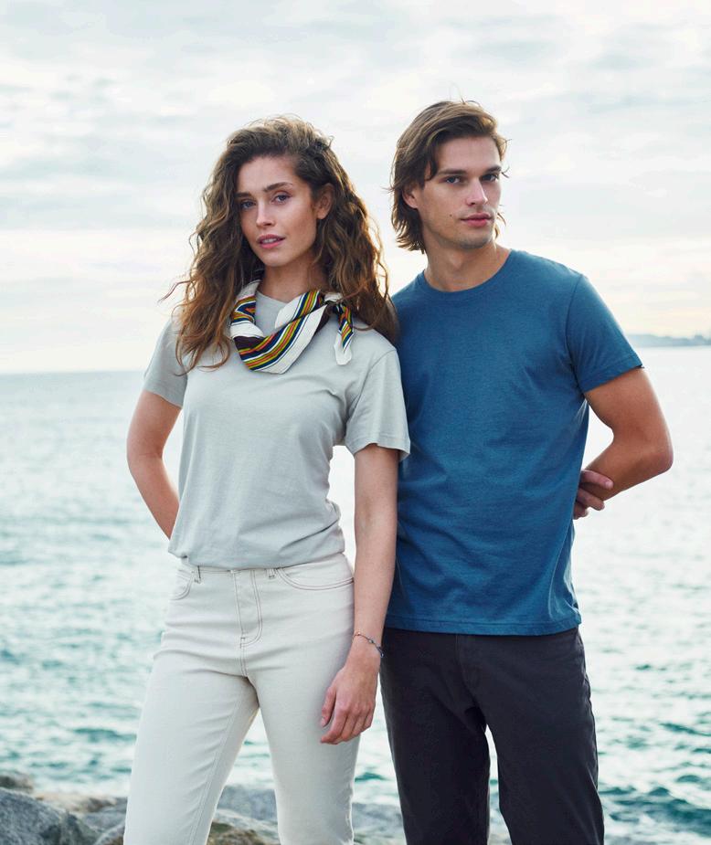 En modern version av en klassisk T-shirt gjord i 100% ekologisk bomull. Den har en dubbel 1x1 ribbkrage. Förstärkt nackband och axelsömmar. Plagget är förkrympt och enzymbehandlat. Herrmodellen är gjord utan sidosömmar.