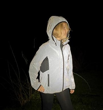 Multiscarf i elastisk fleece med en reflekterande flatlocksstickning.