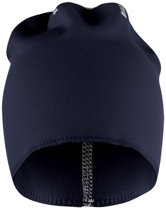 Mössa i elastisk fleece med sex reflekterande flatlocksömmar i toppen.