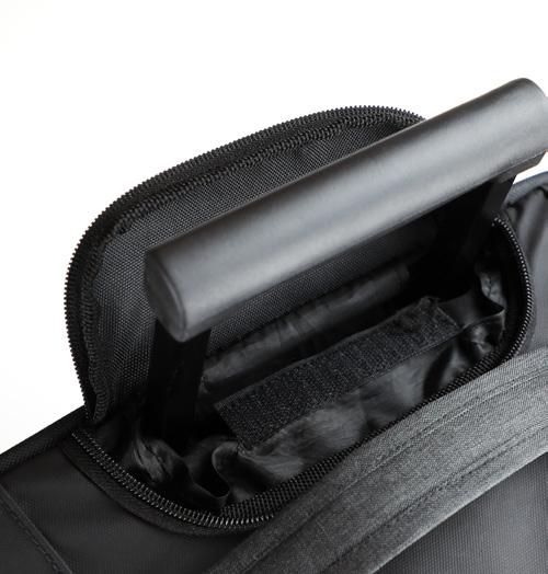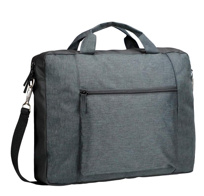 Snygg datorväska. Ett stort fack med ett vadderat fodral för att skydda din bärbara dator.Två stora fickor med dragkedjor på utsidan av väskan. Den bärs med två handtag eller en avtagbar axelrem. En snyggt integrerad rem på baksidan gör att den enkelt kan fästas på en trolley. Mått och volym: 38x33x14,5 cm - 18 L.