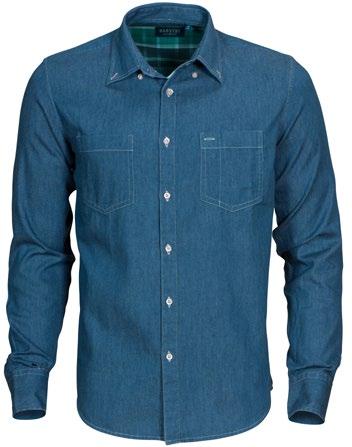 Populär jeansskjorta. Button down-krage och justerbar manschett. Bröstficka på bägge sidor. Rutigt mönster inuti ok och manschett.