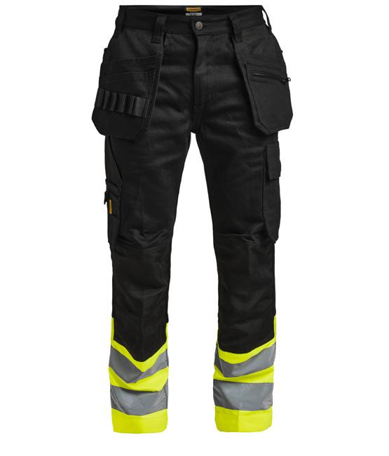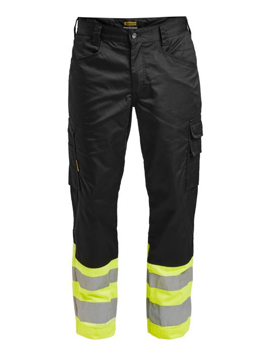Servicebyxa i 4-vägs stretch, EN20471 klass 1. Baserad på Service byxa stretch 2318. Rymliga framfickor. Stolpfickor bak. Blixtlåsförsedd benficka med extra fack inuti för mobilen. Plats för pennor i denna ficka.