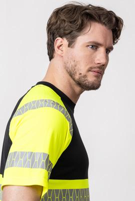 Skön funktions T-shirt i snabbtorkande material. Påvärmd reflextransfer, Jobman design. Reflexer över axlarna för ökad synbarhet. Certifierad i varselklass 2/3 enligt EN ISO 20471.