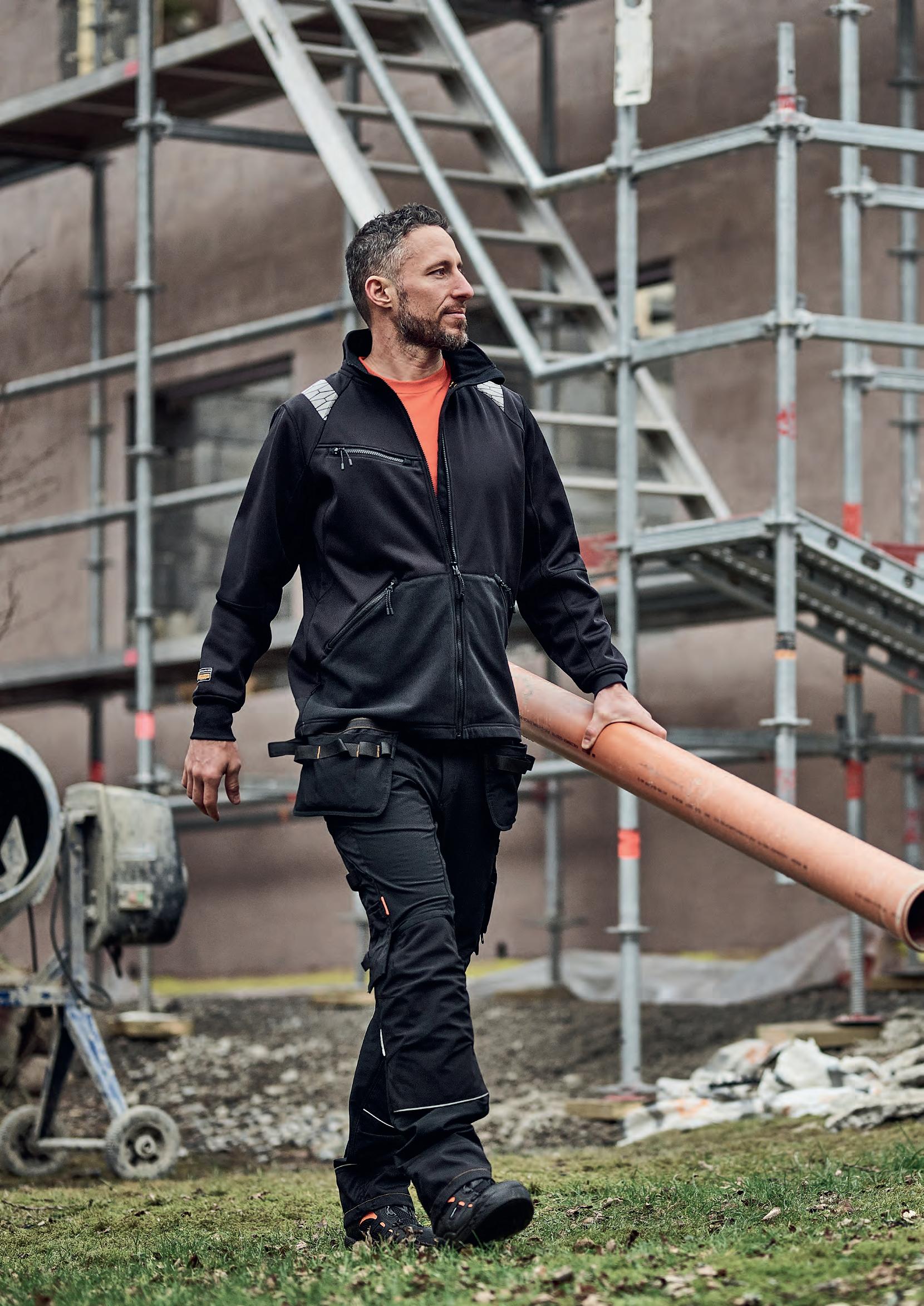 Et eksempel er våre bukser for bygg og håndverk, som er utformet for de spesielle behovene hver eneste håndverker har. Med forsterkede hengelommer og benlomme med glidelås gir de enkel adkomst til verktøy og holder dine personlige ting trygt på plass. Materialene er nøye utvalgt og kombinert i ulike deler av buksen, skåret og sydd for å følge kroppens naturlige form. Resultatet er bukser som er robuste samtidig som de gir full bevegelsesfrihet og ventilasjon der det er nødvendig.