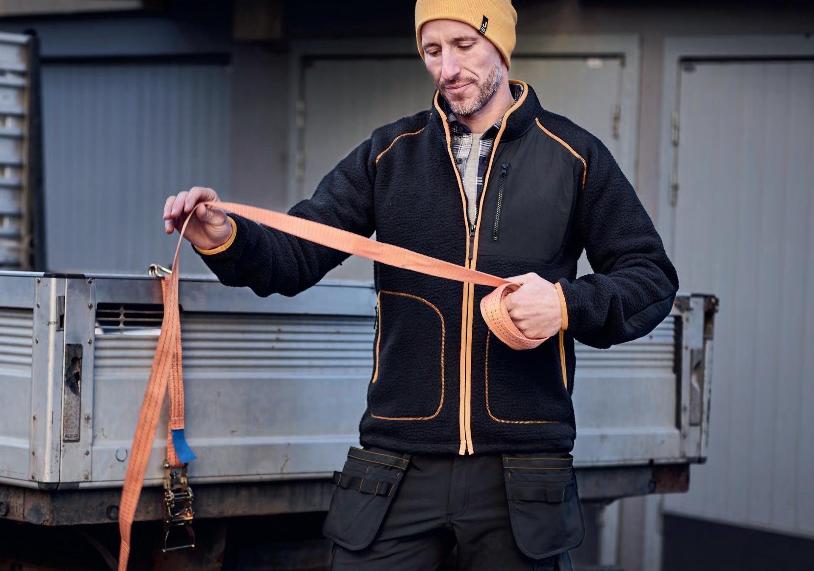 2. Som mellomlag (Layer 2) er det en fordel å bruke et isolerende fleece-, softshell- eller fiberpelsplagg. Jobmans mikrofleeceplagg er smidige og ideelle som mellomlag.
