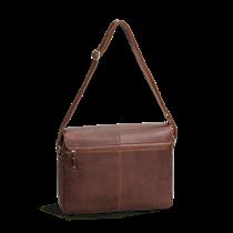 Lagert av slitesterk canvas og kunstskinn. Tre innvendige lommer og to utvendige. Avtagbar skulderrem medfølger.