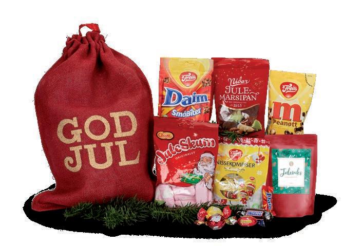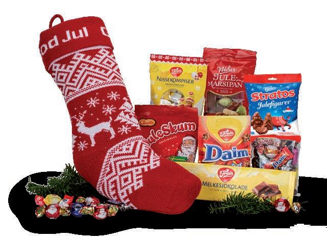 Innhold: Stratos Julefigurer 14x140g, Nidar Julemarsipan 36x38g, Melkesjokolade 200g, Nissekompiser 120g, Daim småbiter 145g, Juleskum 200g, IPB Innpakkede sjokoladebiter 150g.