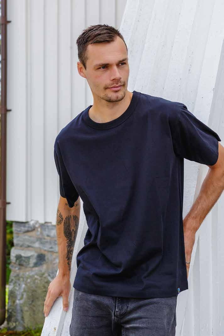 Rundhalsad t-shirt i normal passform samt en nätt ribb runt halskanten. Normal maskintvätt vid 60°