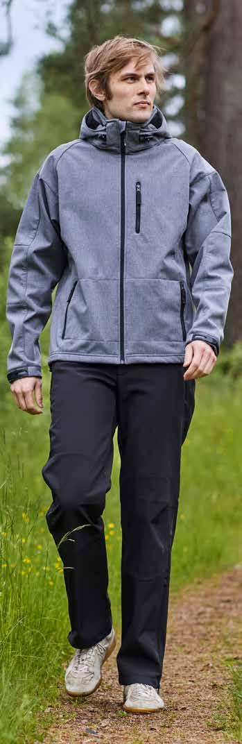 Softshellmaterial är vind- och vattenavvisande samt har mycket god andasförmåga. Tyget består av ett mjukt och stretchigt 3-lagers laminat som torkar mycket snabbt. Observera att materialet kräver en speciell tryckteknik.