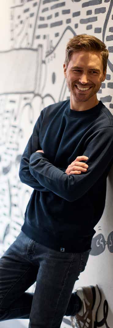 Välarbetad sweatshirt i ett komfortabelt, mjukt och något tyngre material med borstad insida. 2x2 ribb runt halskant, mudd i ärmslut och nederkant. Normal maskintvätt vid 40°