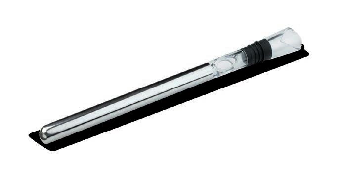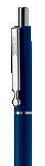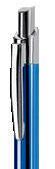 Unik metallpenn i krom med farget lokk. Blått blekk. Lasergravering mulig. Størrelse: ø11x134mm