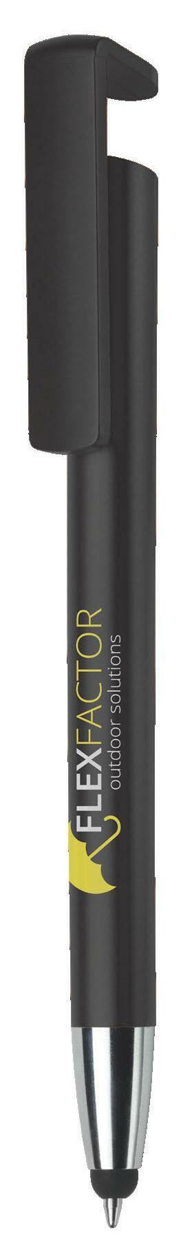 Moderne aluminiumspenn med touch screen topp. Pennen har vrimekanisme. Med gummiert softtouch og sort klips, ring og tip. Størrelse: ø7x136mm