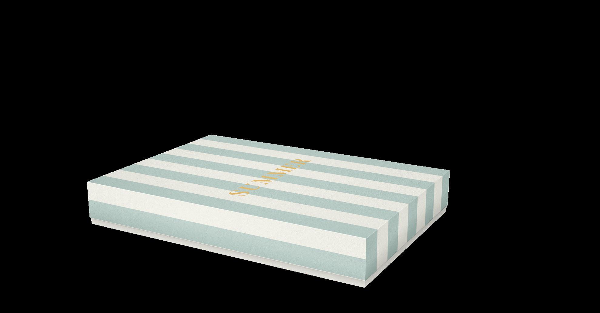 Mottakerens produktvalg leveres papiremballasje laget av resirkulert papir.