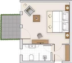35 m2, Balkon/Terrasse, Sitzgelegenheit, Doppelwaschbecken, Dusche, Bidet, separates WC; in einigen Zimmern zusätzlicher Einbett-Schlafraum; im 1. OG Echtholzfußboden